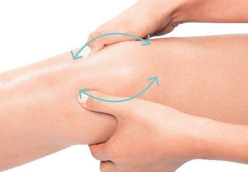 1、揉腿肚:双手将腿肚夹紧,旋转揉动,每侧揉动20~30次,共6次。